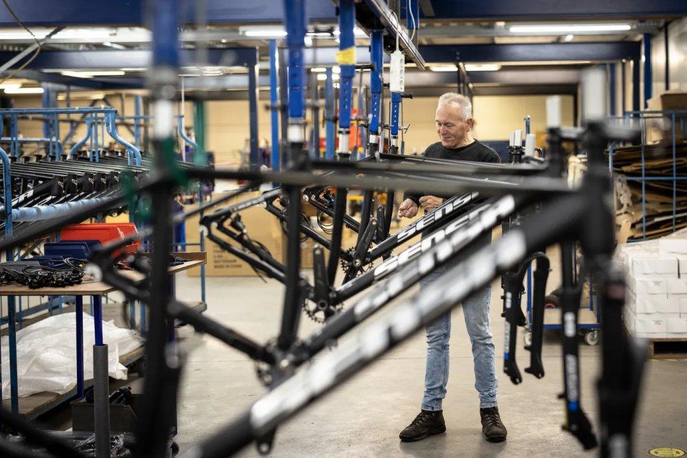 Seit den 1990er Jahren bauen wir unsere Fahrräder im Osten der Niederlande. Alle Komponenten werden einzeln geliefert und in unserer eigenen Fabrik von A bis Z montiert. Mehrere Modelle laufen gleichzeitig auf unterschiedlichen Montagelinien, um ganzjährig kurze Lieferzeiten zu gewährleisten.