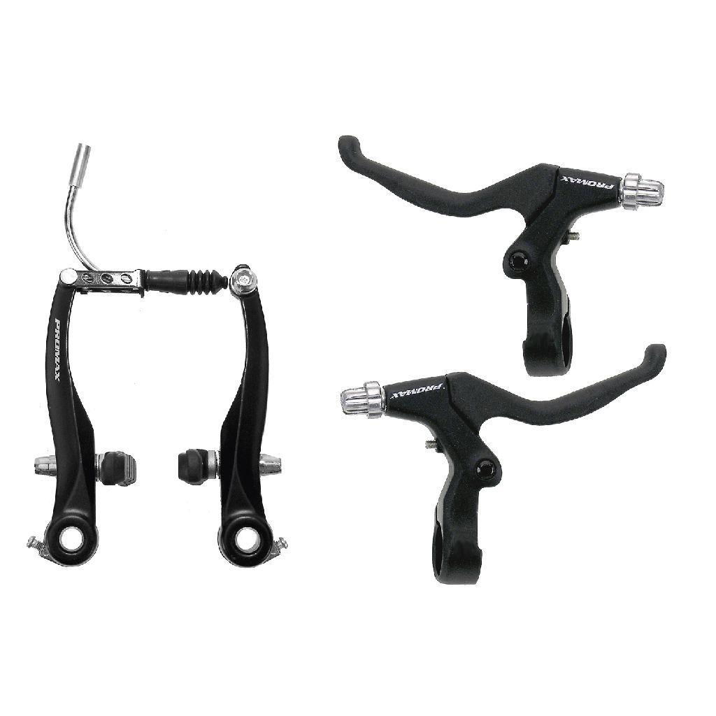 PROMAX, Bremse (V-Brake), V-Bremsen Set, mattschwarz, Bremshebelpaar Alu schwarz + V-Bremskörper VR + HR Alu schwarz, 110 mm, (Art.Nr. 361497 u. 360854), EN 14766 geprüft, in Blisterverpackung