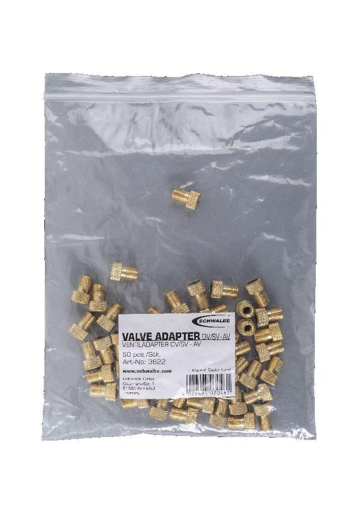 Schwalbe, Zubehör, Ventiladapter SV/DV auf AV, 50 pcs. in Bag, Gewicht: ca. 3g, (Herst.-Nr. 3622)