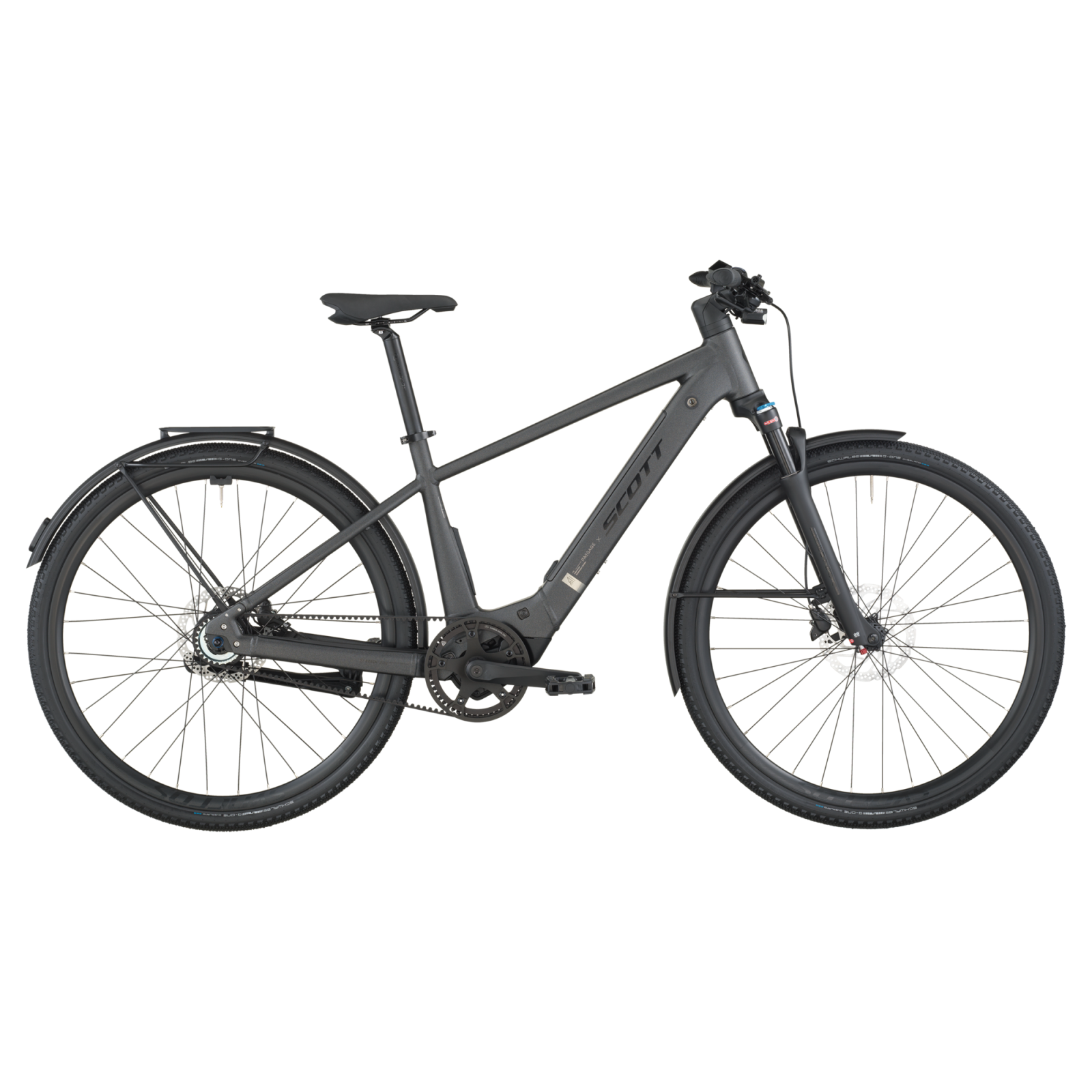 Beim Fahren fühlt sich das Passage dank der ausgewogenen Geometrie und gleichmäßigen Gewichtsverteilung leicht an, denn der Motor und 400-Wh-Akku sitzen niedrid am Rahmen. Der Bosch SX-Motor schont die Beine und dank des schmaleren Q-Faktor im Vergleich zu größeren E-Bikes kannst du natürlich in die Pedale treten. Beim Fahren mit dem Passage durch die Stadt auf unebenen Asphalt kannst du dich darauf verlassen, dass die 75-mm-Federgabel genug Dämpfung bietet, um die Kontrolle zu behalten. Wenn du lange unterwegs bist, ist der Gepäckträger genau das Richtige, um alles Wichtige zu verstauen.