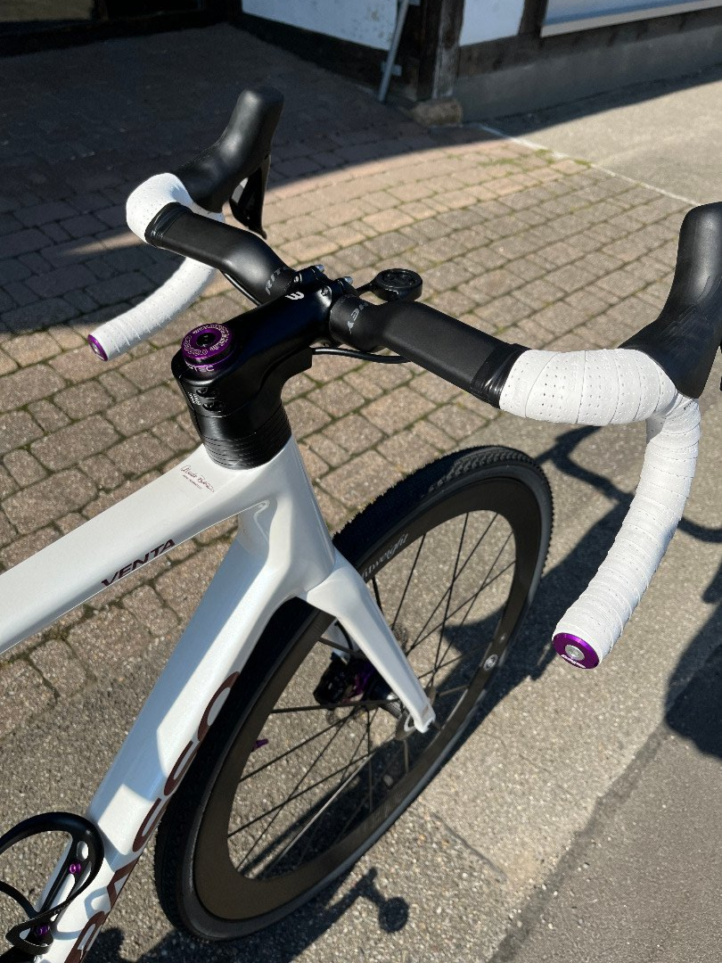 Sram XX Schaltung. Specialized Brain Federgabel. Tune Kurbel. Tune Princess Naben. S-Works Sattel. BFO Bremsen. Enve Carbon Lenker. Gewicht: 8,6Kg